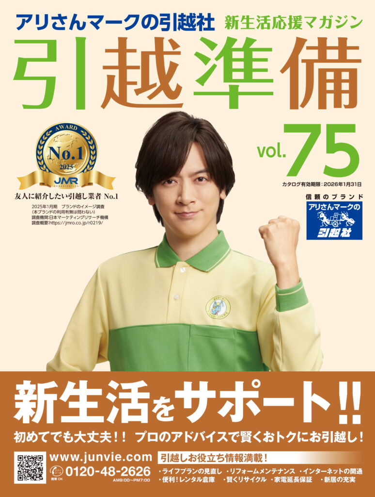 投稿日: 2025年12月16日2025年12月16日 投稿者: アリさんサービス管理人『引越準備75号』発刊しました。 新生活サポートマガジン『引越準備75号』が発刊されました。 「あったらいいな」が、この1冊に! お見積時、無料で配布しています。是非、ご覧ください。